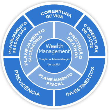 Selecione uma categoria do Círculo de Necessidades e saiba quais são as soluções específicas que ficam à sua disposição para o Planejamento da Aposentadoria, a Educação de seus filhos, a Cobertura de Saúde e a Cobertura de Vida.